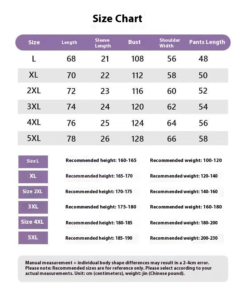 Size: L recommended 45.00kg-70.00kg,XL recommended 200kg-80.00kg,2XL recommended 70.00kg-90.00kg,3XL recommended 80.00kg-kg,4XL recommended 90.00kg-100.00kg